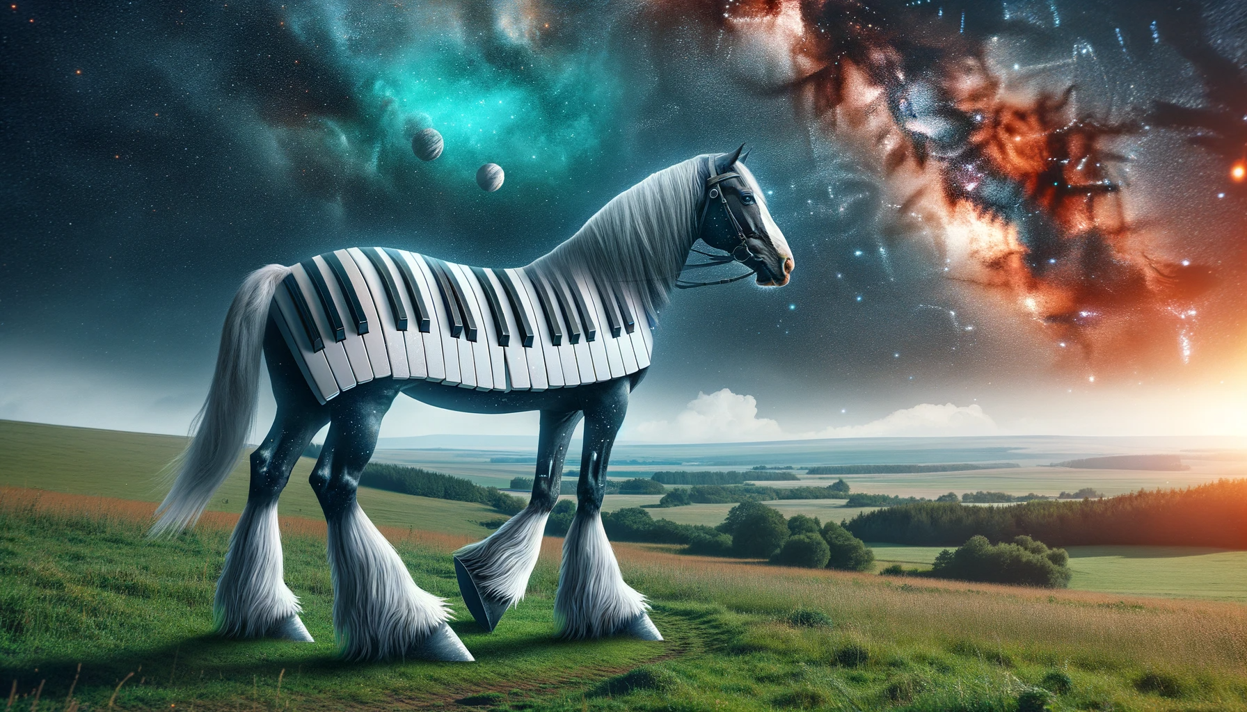 On Halloween night, while waiting for kids to come begging for candy, I sat on the couch and started throwing strange but simple prompts at DALL-E 3, and basically just having fun. In case you haven’t spent much time with DALL-E 3, it’s different in that, on the back end, ChatGPT will take your simple prompt and rewrite it, adding various enhancements. Generally speaking, the output is far more interesting than my wimpy prompt should generate. For instance, I asked for a “Landscape picture of a horse wearing a space helmet. His legs are made from piano keys” which got me this really cool picture, even if my request for a space helmet was ignored.